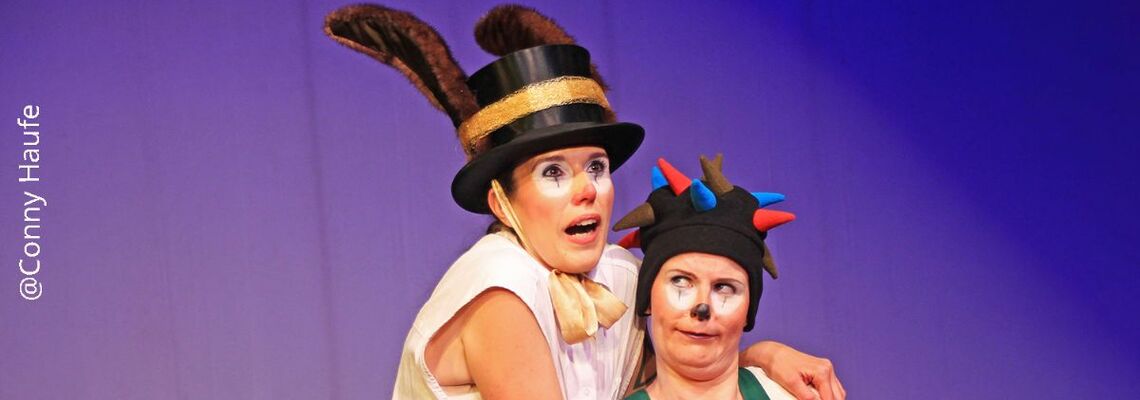 Das Stück lässt uns das kleine, unvollkommene, kluge und witzige Igelpärchen begleiten. Auf humor- volle Weise erleben wir, wie sie den scheinbar unangreifbaren Hasen entlarven und besiegen. Als der Hochmütige sich den Rübenacker unter die gepflegten Nägel reißen will, kommt es zum ungleichen Wettlauf. Alles wird vom sensationslüsternen Raben kommentiert. Eine mutmachende Parabel mit Musik.